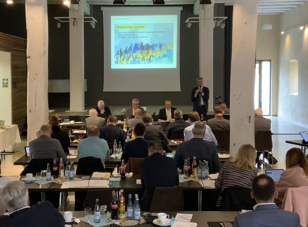 Dass die Flüchtlingssituation auch im Landkreis Karlsruhe sehr problematisch ist bestätigte Landrat Dr. Christoph Schnaudigel. Allein aus der Ukraine sind in einem Jahr über 5.400 Personen gekommen. Hinzu kommen Geflüchtete aus anderen Herkunftsländern. Dass die Zahlen im ersten Quartal sehr deutlich über dem Niveau des Vorjahres liegen, gebe Grund zur Sorge. Hinzu komme, dass jetzt viele Vorgaben beachtet werden müssen, die es bei der Flüchtlingswelle 2015/16 nicht gab. „Wir hatten damals mehr Handlungsspielraum“, berichtete der Landrat, der einen „heißen Herbst“ erwartet, obwohl der Landkreis neue Unterkünfte schafft. Kreisvorsitzender Bürgermeister Thomas Nowitzki empfahl, die Gemeinderäte über die Situation und die damit verbundenen Herausforderungen zu informieren.