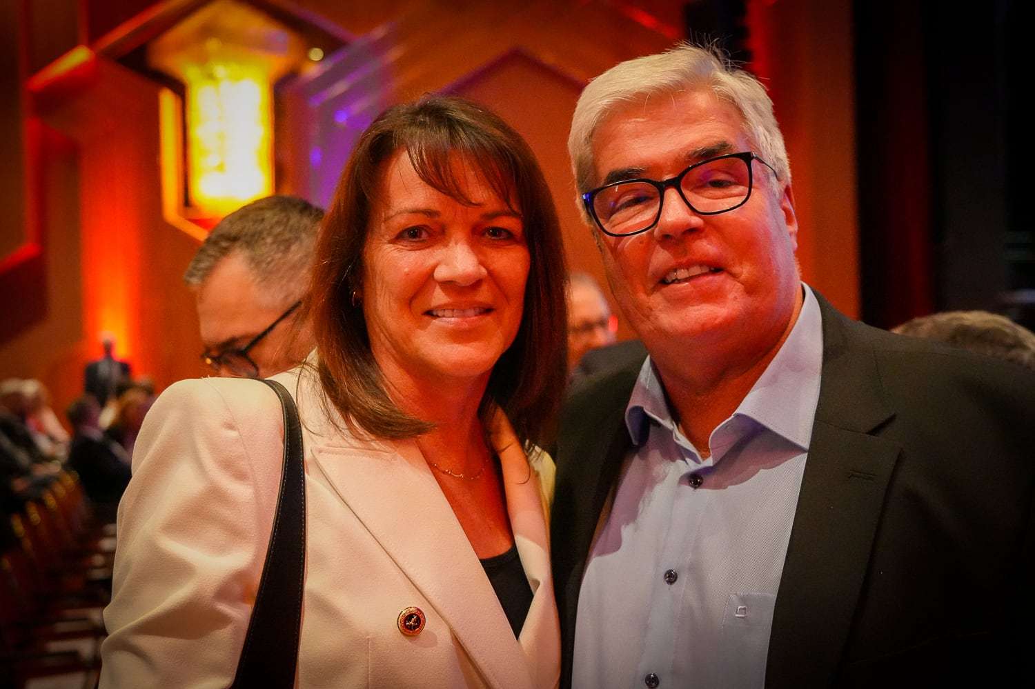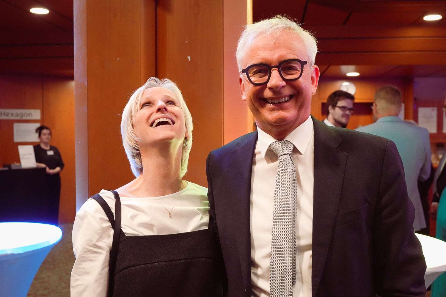Alles, was Rang und Namen hatte, war angerückt und reihte sich brav in die endlos lange Doppelschlange ein, um dem Gastgeber, Landrat Dr. Christoph Schnaudigel, die Hand zu schütteln. Der oberste kommunalpolitische Player des Landkreises präsentierte sich glänzend aufgelegt. Seite an Seite mit seiner Frau Adelheid Breitschwerdt fand er für jeden Gast Zeit für ein paar herzliche Worte, einen festen Händedruck oder eine Umarmung.