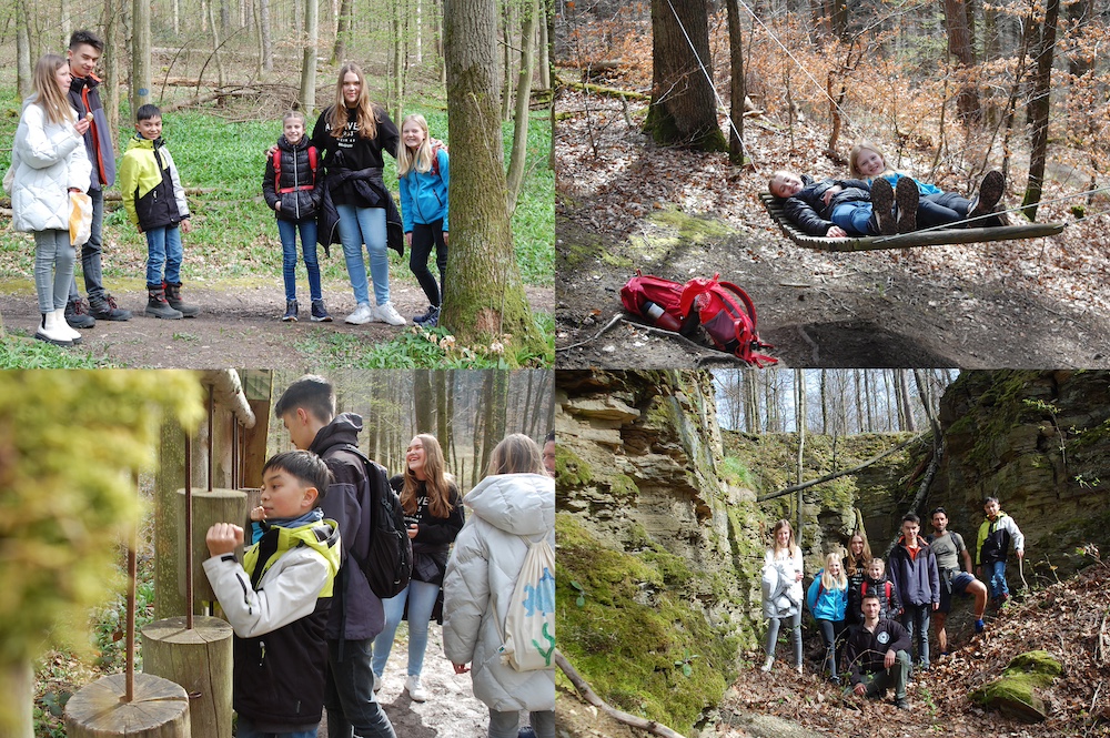 Teil I unserer Osterferien-Aktionswoche führte uns gen Eppingen – genauer gesagt in den Wald südlich des Ottilienberges. Auf dem Parkplatz beim Jägersee stellten wir unseren E-Bus ab. Es war ein wunderschöner Frühlingstag, rundherum blühte und grünte es, als wir den Waldfühlpfad betraten. Das ist ein Rundwanderweg mit verschiedenen Stationen, die einen den Wald mit allen Sinnen erleben (und besser verstehen) lassen. Etwa beim Holz-Xylophon, das die Akustik des Waldes zum Leben erweckt. Oder bei der Baumwippe, welche die Spannung, unter der ein Baumstamm steht, begreifen lässt. Oder beim Holz-Gewichte-stemmen, das die unterschiedliche Schwere unterschiedlicher Baumarten spürbar vermittelt. Auch schmeckten wir den Wald, als wir den dort in Hülle und Fülle wachsenden Bärlauch frisch verkosteten (und für unsere Folgeaktion pflückten). Etwas zurückhaltender waren unsere Teens und Abendtreffler beim Barfußpfad – zu kalt und zu matschig erschien ihnen die Runde. (Darum mussten eben wir Betreuer die »Vor-Geher« machen.)