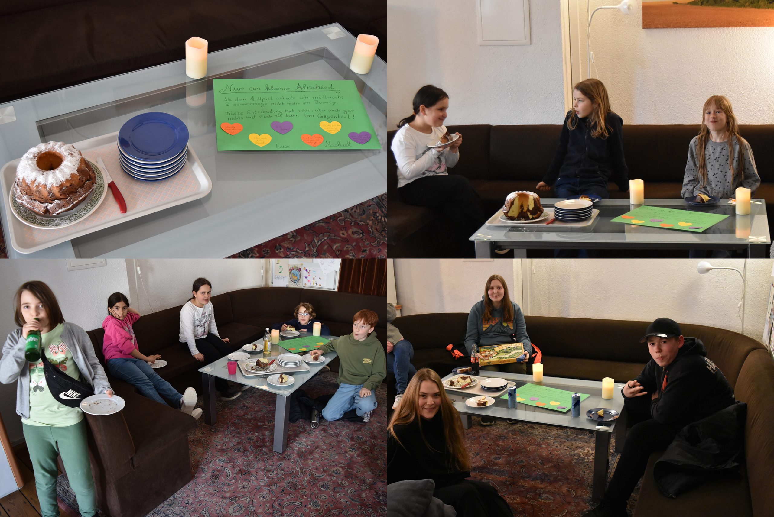 In sechs bunten Herzen standen dann folgende Botschaften: „Danke, dass ihr da seid! – Ihr seid tolle Besucher! – Die Besten! – Es ist ein Privileg, mit euch Zeit verbringen zu dürfen! – Danke für die schöne gemeinsame Zeit! – Wir sehen uns freitags, sonntags oder montags in der Schulbetreuung!“