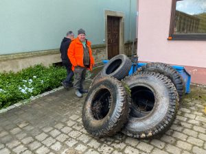 Achtlosigkeit kann allerdings jenen Umweltsündern nicht bescheinigt werden, deren gut verstecktes Arsenal an Lkw-Reifen von Jagdpächtern im Wald gefunden wurde. Jürgen Häfele hatte zuvor die Stelle an der Gemarkungsgrenze nach Bretten gekennzeichnet. Dort angekommen, wurde den Natur- und Tierschützern das ganze Ausmaß der Freveltat deutlich. Mithilfe eines Quads wurden fast zehn große Reifen aus ihrem Versteck gezogen und mittels Kleinlastwagen und Anhänger zum Bauhof gebracht.