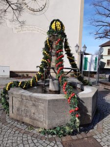 das Osterwochenende naht. Und wer sich dessen noch nicht so Recht bewusst war, der muss nur einen Blick auf den von den Landfrauen so wunderschön österlich geschmückten Rathausbrunnen werfen.