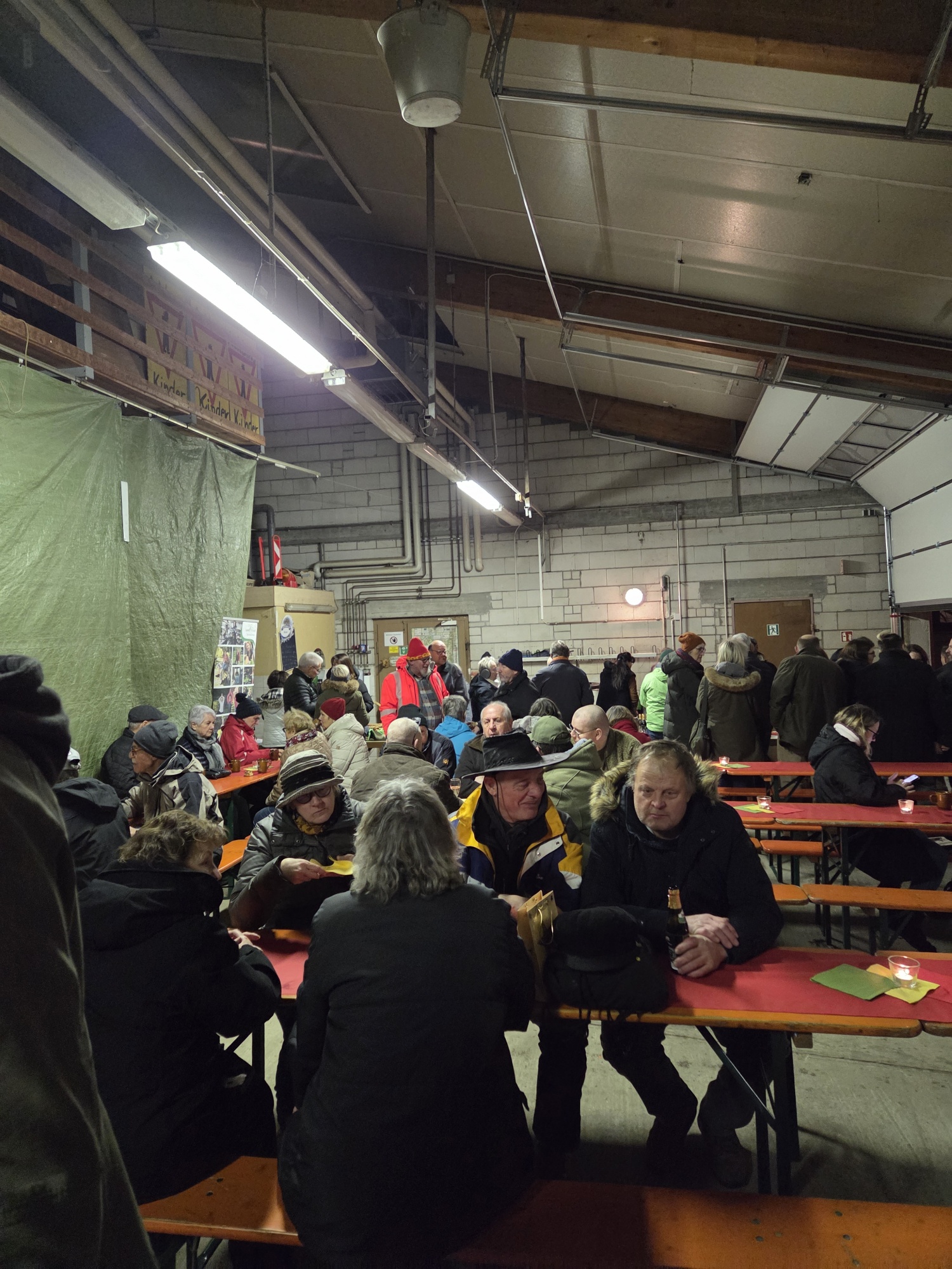 Trotz widriger Wetterverhältnisse mit Regen und Sturm folgten über 100 Gondelsheimerinnen und Gondelsheimer der Einladung und fanden den Weg in den warmen Bauhof. Darüber zeigte sich der Bürgermeister in seiner Ansprache besonders erfreut.