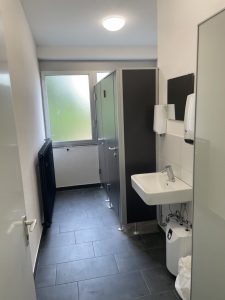 Obwohl die Handwerker aus Gondelsheim und dem Umland ihre Arbeit zügig erledigten, gingen Materialengpässe und Lieferschwierigkeiten auch an dieser Baustelle nicht spurlos vorüber. So fiel Hauptamtsleiter Sören Rexroth sprichwörtlich ein Stein vom Herzen, als die Trennwände für die einzelnen Kabinen zu guter Letzt doch fast pünktlich am vergangenen Dienstag geliefert und montiert werden konnten.