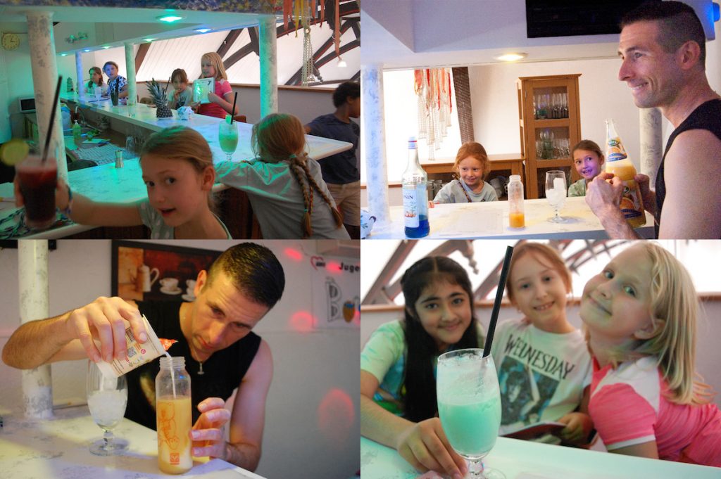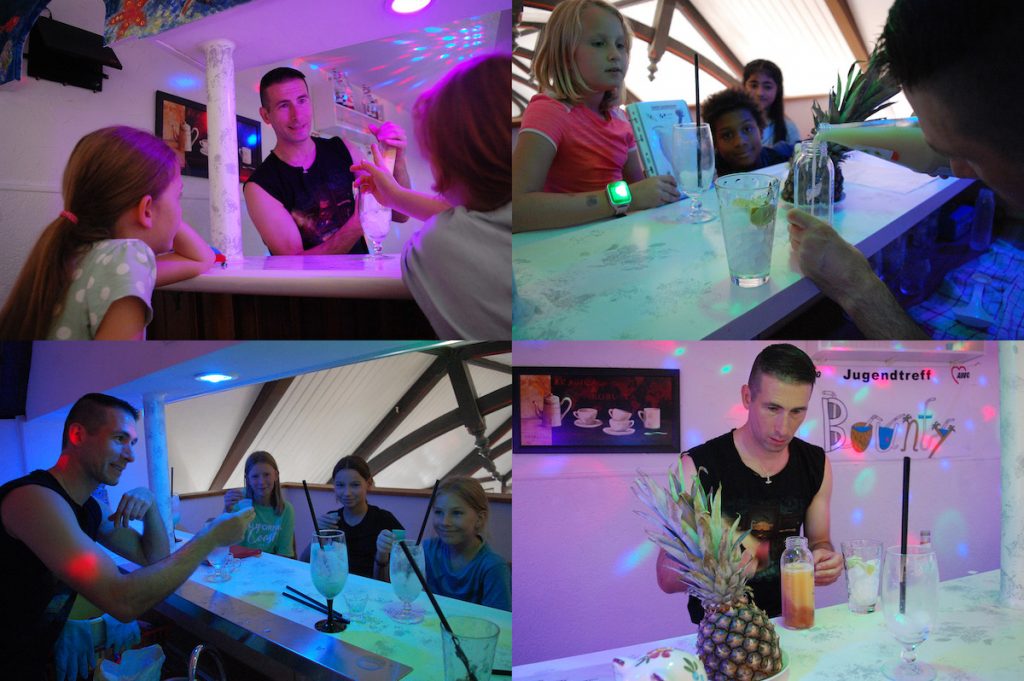 Jaja, das bekommen wir oft zu hören: „Du bist zu langsam!“ oder „Hey, jetzt mach mal schneller!“ Gleichzeitig aber (und das ist dann doch recht lustig) fordern die Kids und Teens andauernd irgendwelche Extra-Sperenzchen oder sie wollen einem etwas erzählen (oft mehrere gleichzeitig). Dass sie damit die Arbeit ausbremsen, die sie doch eigentlich beschleunigt wissen wollen, ist ihnen offenbar nicht ganz bewusst. 😉 Es stand an dieser Stelle ja schon öfter, kann aber nicht oft genug wiederholt werden: An so einem Bartag bräuchte man mehrere Paare (hoch aufmerksamer) Ohren und eine ganze Batterie fleißiger und flinker Hände. Spaß gemacht hat es trotzdem. Und wie!