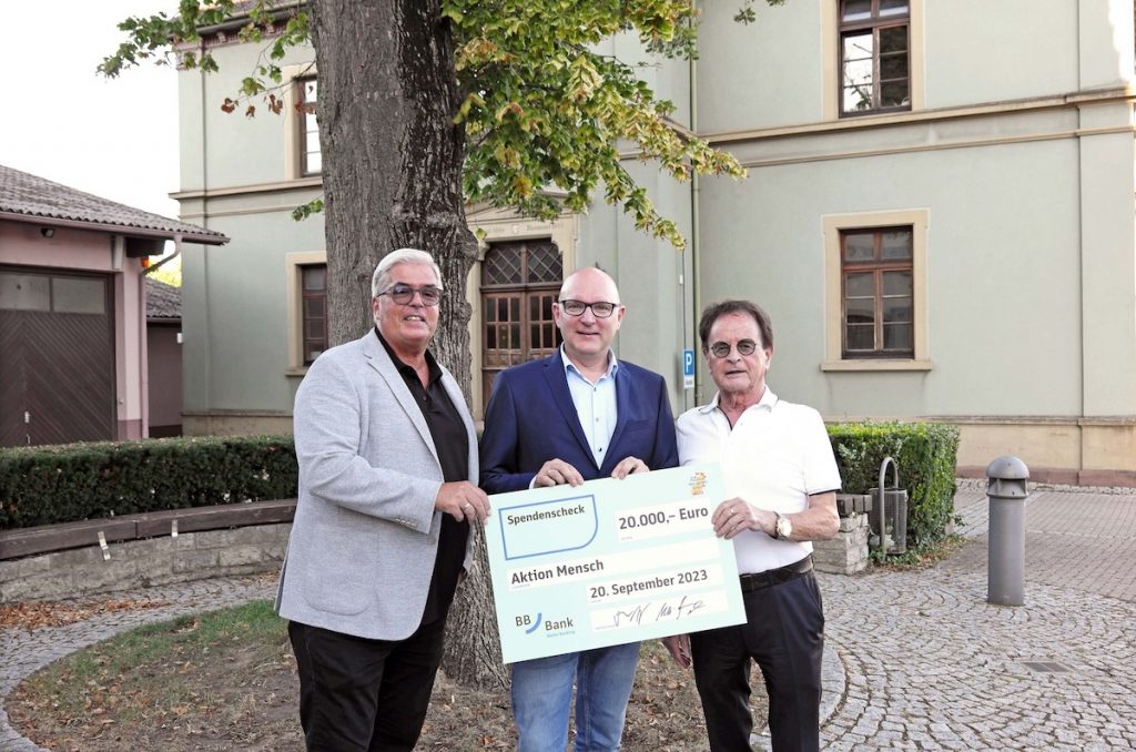 Ein Musik-Festival mit wirklich nachhaltigem Erfolg. 20.000 Euro spielte die zweitägige Veranstaltung im Gondelsheimer Schlossstadion vor nunmehr zwei Jahren ein. Den entsprechenden Scheck übergaben nun Bürgermeister Markus Rupp und Mitorganisator Uli Lange vom „Festival der guten Taten“ am vergangenen Mittwoch an die Aktion Mensch. „Es ist schön, dass wir nun noch einmal helfen können“, sagte Rupp und ergänzte: „Damit fördern wir die Inklusion, das Miteinander von Menschen mit und ohne Behinderung.“ Genau diesem Zweck hat sich die Aktion Mensch verschrieben.