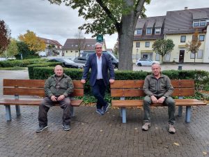 Gesagt, getan. Die beiden „Schwätzbänkle“ sind bereits vorhanden. Dafür haben die beiden Jäger vom Revier West, Jürgen Häffele und Hansjörg Mohr, gesorgt. „Ihnen gilt ein besonderer Dank für ihr ehrenamtliches Engagement“, lobt Rupp deren prompte Hilfe. Was jetzt noch fehlt, sind die passenden Standorte in Gondelsheim für die beiden neuen „Kommunikationszentren“.