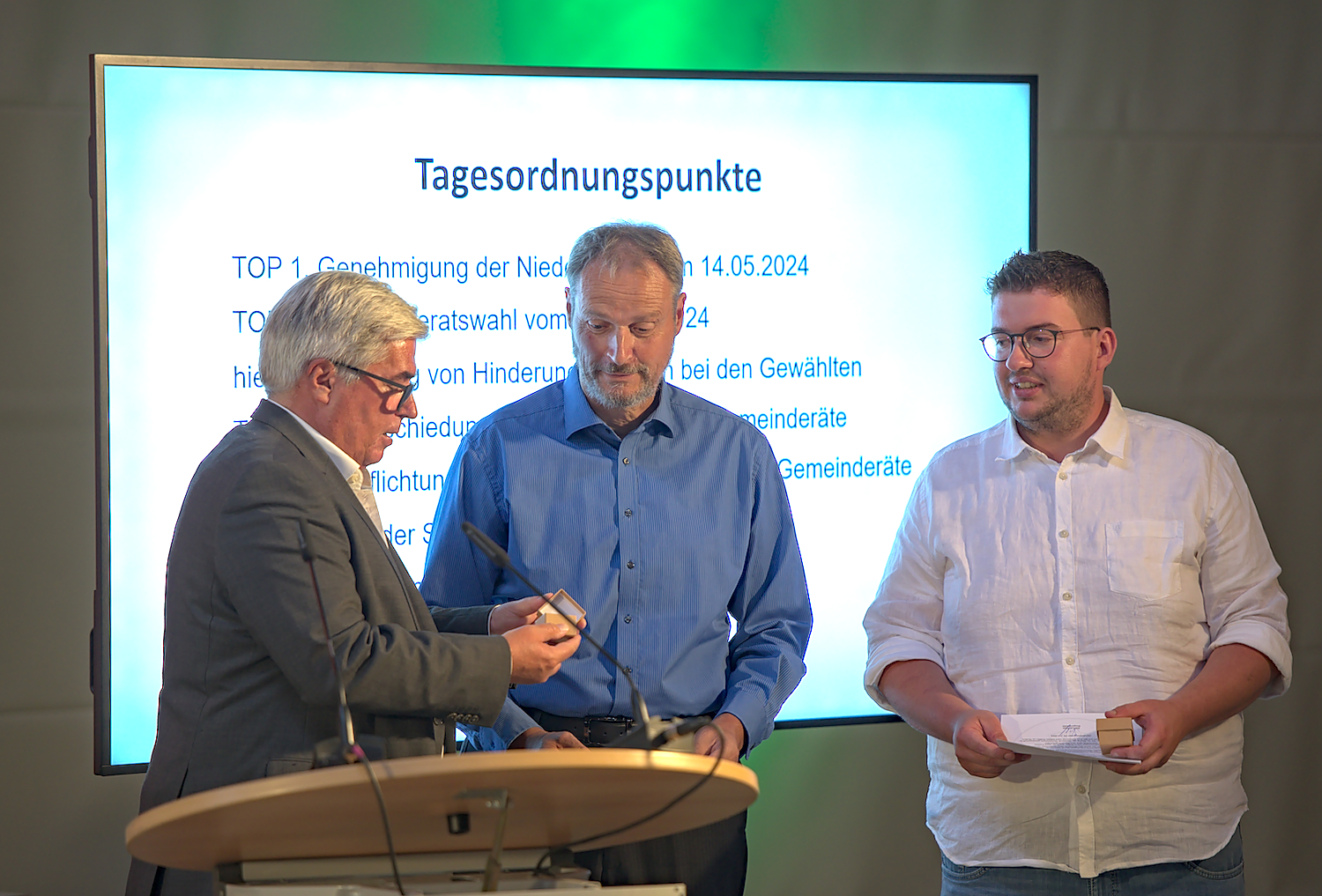 Für die beiden ausscheidenden Ratsmitglieder wurden zwei neue begrüßt mit Timo Walz (SPD) und Tino Huber (Freie Wähler). An das gesamte Gremium sowie an alle 56 Kandidaten gerichtet, sagte Rupp: „Ich möchte mich bei allen bedanken, die am 9. Juni kandidiert haben. Die Bereitschaft dafür erfordert Mut. Sie alle brachten das Pflichtbewusstsein mit, tatkräftig anzupacken und auf die Bevölkerung und ihre Belange zu hören.“