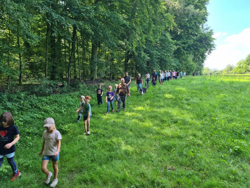 Während eines Revierrundgangs mit dem Jagdpächter konnten Jung und Alt viel über die heimische Natur und die Arbeit der Jägerschaft lernen. Eine Drohnenvorführung demonstrierte eindrucksvoll, wie die Jäger den Schutz des Jungwildes gewährleisten.