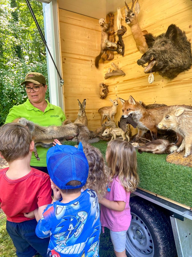 Die Naturpädagogen Nadine Becker, Dirk Becker und Björn Heneka präsentierten vor Ort stolz den neuen LernortNatur-Wagen. Der Vogelpark Neuthard war mit Matus Slezak, seiner Frau Matka Slezáková und ihren faszinierenden Greifvögeln ebenfalls vertreten und zog viele Besucher in seinen Bann.