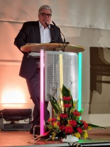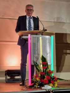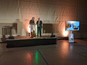 Für die Lösung der Bahnübergangs-Frage sei man für jeden Mitstreiter dankbar, fand Rupp. Dankbar zeigte er sich ebenso für die „vielen freundlichen Worte heute Abend“. Es gebe natürlich vieles, was sich seit 1998 verändert habe, aber für ihn auch viele Konstanten: Rupp nannte dabei den Spaß an der Arbeit, sein Bestreben, sich für ein Gondelsheim stark zu machen, das Selbstbewusstsein nach innen und außen ausstrahle und die Beachtung des moralischen Erbes seines früh verstorbenen Vaters. „Redlichkeit, Ehrlichkeit, Bodenständigkeit – diese Tugenden hat er mir vermittelt.“ Deshalb sei für ihn Demut vor dem Amt sehr wichtig sowie das Bewusstsein, dass dieses Amt nur auf Zeit vergeben ist und die Bevölkerung der eigentliche Chef ist. Das Miteinander, die Wertschätzung allen gegenüber – Bürgerinnen und Bürger, Gemeinderat, Verwaltung – seien für ihn ganz wesentlich. „Ich bin hier aufgewachsen und darf nun Gondelsheim mitgestalten. Ich habe eine wunderbare Aufgabe in einem wunderbaren Ort“, sagte Rupp und beendete seine Ausführungen mit der leicht abgewandelten Bochum-Hymne von Herbert Grönemeyer: „Gondelsheim, ich komm aus dir. Gondelsheim, ich häng an dir. Glück auf, Gondelsheim!“