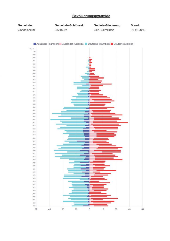 Einmal mehr ist die Einwohnerzahl der Gemeinde Gondelsheim in 2019 im Vergleich zum Vorjahr weiter angestiegen und zwar erneut kräftig auf nun 4028 (Vj. 3.953) zum Jahresende. Erstmals hat man damit die magische Grenze der 4.000 Einwohner überschritten.