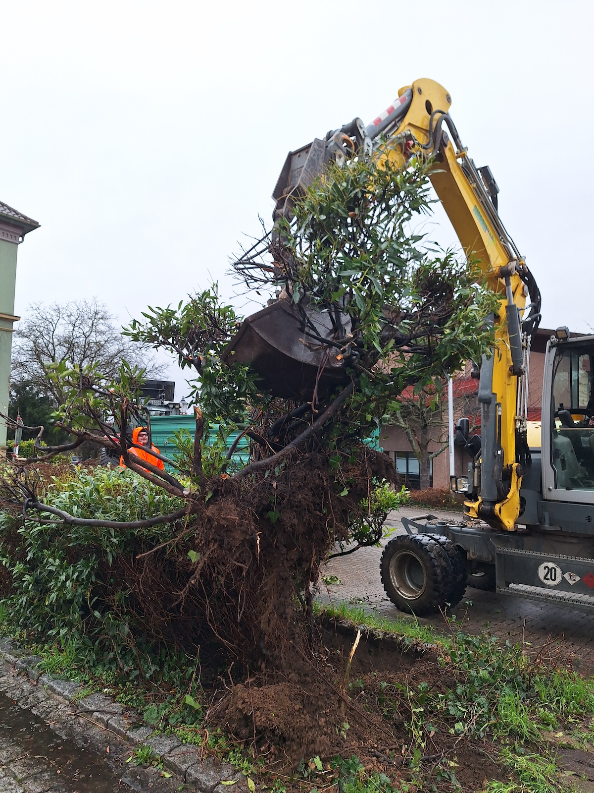 Hier wird der Kirschlorbeer – wie auf dem Foto zu sehen – entfernt. Im März erfolgt die Neupflanzung.