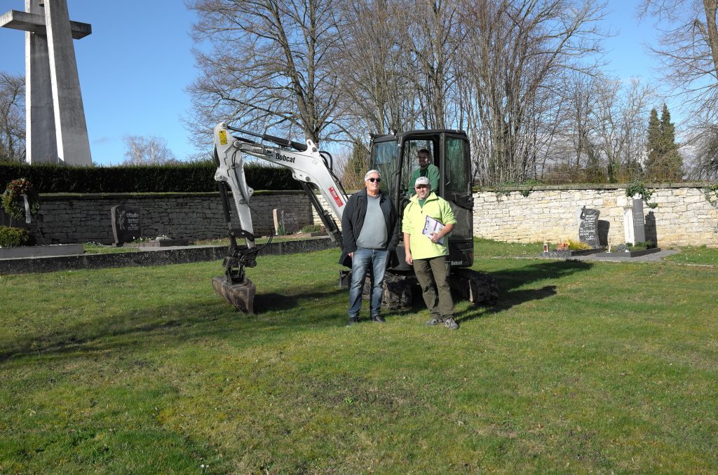 Für die Grabpflege sorgt die regionale Friedhofsgärtnerei Glück, die in den kommenden Wochen auch die parkähnliche Umgebung schafft mit kleinkronigen Bäumen, einem Rundweg, Sitzgelegenheiten, einer Pflanzenauswahl, die dafür sorgt, dass Besucher das ganze Jahr über blühende Blumen zu sehen und riechen bekommen und die zudem tierfreundlich ist. Wurzeln und Staudenbeete erfreuen Insekten, insbesondere Bienen, und Steinhaufen bieten unter anderem Eidechsen Unterschlupf. „Naturnah, grün, insektenfreundlich, auch das zeichnet das neue Grabfeld aus“, informiert Bürgermeister Rupp. 36 Urnengrabstätten, 10 davon am Baum sowie 5 Sarggräber bietet das neue Grabfeld. Auch damit trägt die Gemeinde den veränderten Wünschen der Bürgerinnen und Bürger Rechnung: „Vor Jahren war die Erdbestattung der Standard und eine Urnenbeisetzung die absolute Ausnahme. Heute verhält es sich genau umgekehrt“, so Rupp.