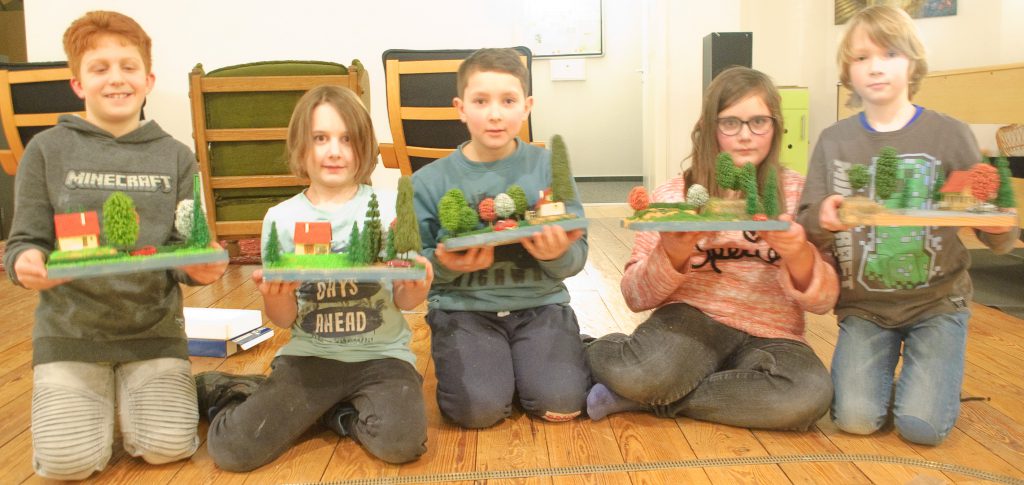 Nach einem Abschlussfoto durften die stolzen Landschafts-Bauer ihr eigenes Gelände-Modell mit nach Hause nehmen.